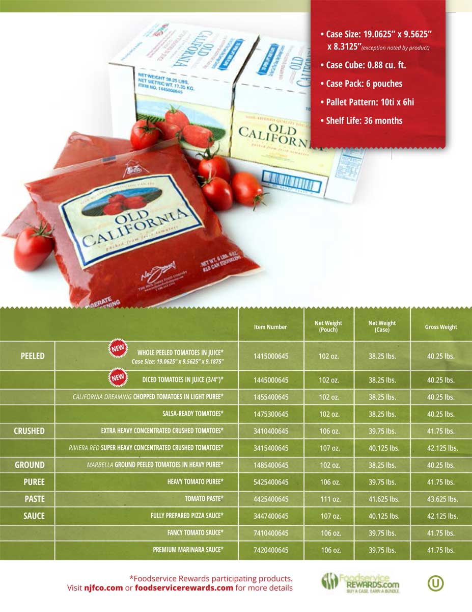 • Pouch Packed Shelf Stable Tomato and Sauces