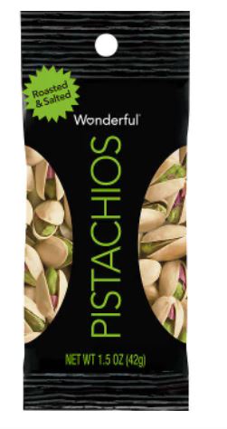 No Shell pistachios in a variety of flavors (Roasted & Salted, BBQ, & Salt/Vinegar)